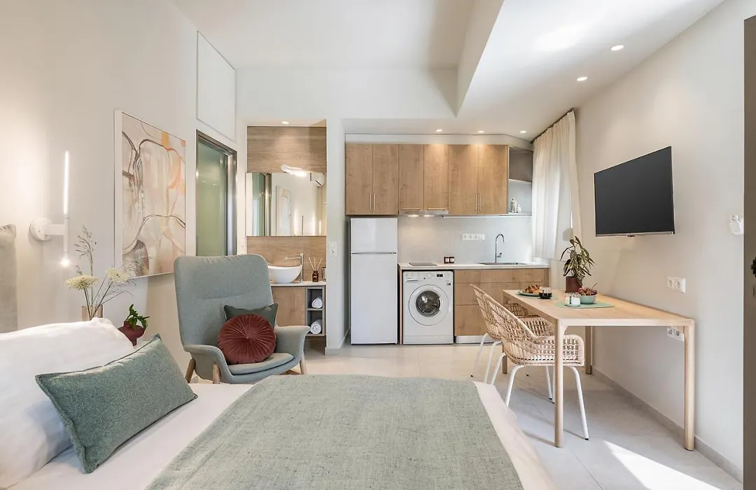 A konyhai felszerelések magukba foglalják az elektromos vízforralót, hűtőt és konyhai edényeket. 20 kilométerre helyezkedik el a Souda repülőtértől. A vendégeket pihenésre invitálják a napozóteraszra. Gépkocsik bérelhetők.